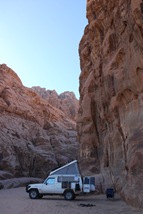 All morning we are today herumgekurvt in the wadi. We got through it without deflating everywhere (ok, sometimes we needed three attempts to cross a dune). Many dunes hats but not just a couple of soft sands, which are connected to the bush taxi is no problem. Afternoon, we met Walter and two other camping cars, they have taken refuge from the mosquitoes in Aqaba. As it gets warmer in the past few days, there's now a lot of it ... we went to went to Petra, where we for 5 JD (ca. 5 €) in the parking lot the "Visitor Centre can stand. " Here we met a French motorcyclist who was traveling around the world.